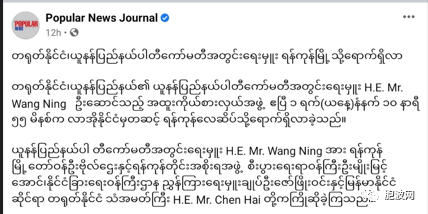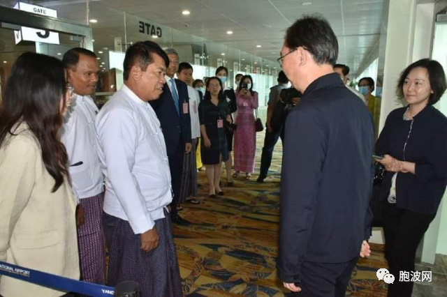 2023年4月1日上午10:55时,中国云南省委书记H.E.MR.WANG NING王宁阁下为首的特别代表团由老挝转机抵达仰光国际机场。仰光市长吴博特U BO HTAY、仰光省政府经济部长吴缪敏昂U MYO MYINT AUNG、外交部吴佐漂温U ZAW PHYO WIN以及中国驻缅甸大使馆H.E.MR.CHEN HAI陈海阁下等前往机场接机欢迎。